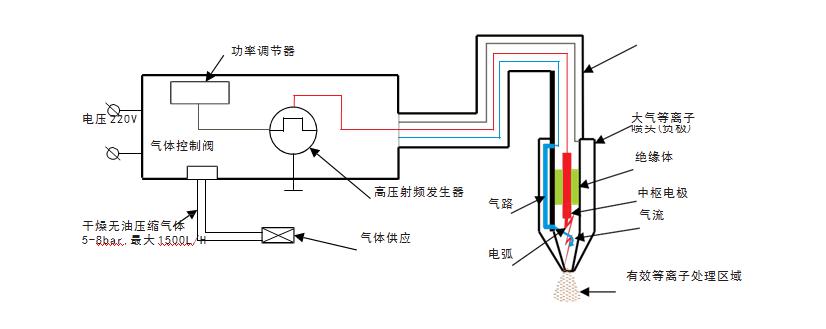 1、氣體激發:在常壓環境下通過電暈放電、輝光放電或大氣壓微波等技術激發氣體形成等離子體。